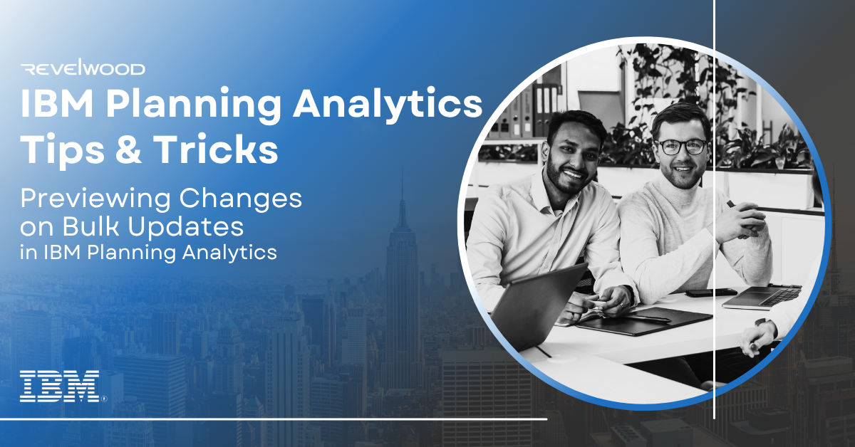 Revelwood is an IBM Gold Business Partner with more than 30 years of experience designing, developing, implementing and maintaining IBM Planning Analytics environments. We focus on solutions for the Office of Finance and have partnered with clients of all sizes across all industries to optimize, enhance and expand their use of Planning Analytics. Revelwood’s Planning Analytics team consists of PA experts with decades of experience, and we have been recognized via awards including IBM Champion status.