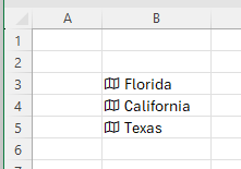 1 – Select a few cells and type in the following US state abbreviations: FL, CA, TX.