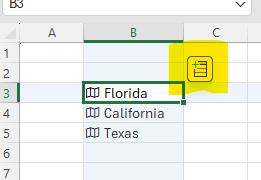 A new ‘Insert Data’ icon appears when you select a linked data type. You can click on a data item from the item list to insert that data into Excel.