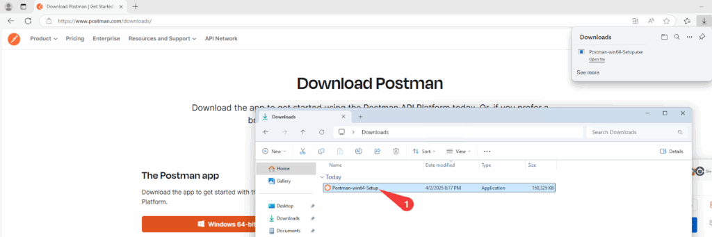 - 2. The remaining steps may differ depending on your operating system. For non-Windows devices, follow the appropriate installation process for your operating system. Windows installations can continue by running the Postman executable file that was downloaded in the above step.